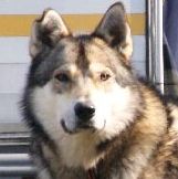 Chugachs Vayda Vigdis, Alaskan Malamute Hündin, geb.24.3.2008- läuft als Lead- oder Team-Dog, manchmal mit wechselnder Motivation, ein Malamute eben, aber sie bringt eine große Ruhe ins Gespann und schafft Sicherheit.