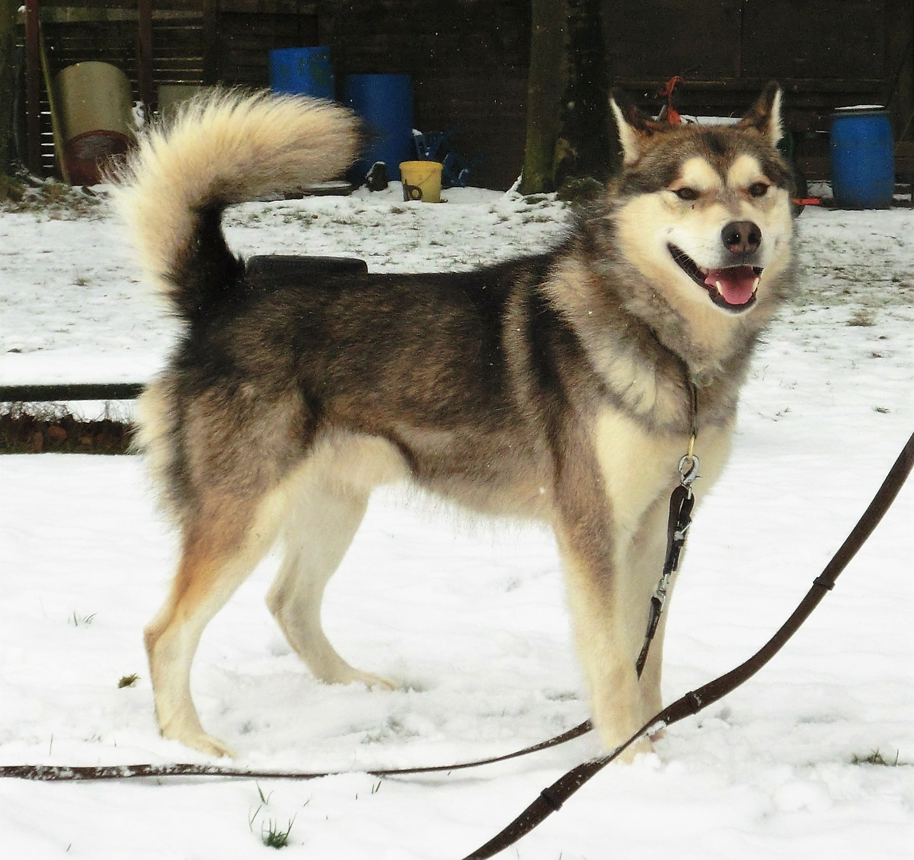 Athaba, geb.16.12.2006 - alle Positionen, wird nur noch für kurze Touren eingespannt, um eventuell ein Jungtier zu entlasten. Athaba war lange Jahre unser zuverlässigster, arbeitswilligster Hund. Nun, mit 11 Jahren, hat er sich eine ruhigere Zeit mit weniger Höchstleistungseinsätzen verdient.
